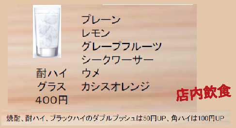 店内飲食メニュー